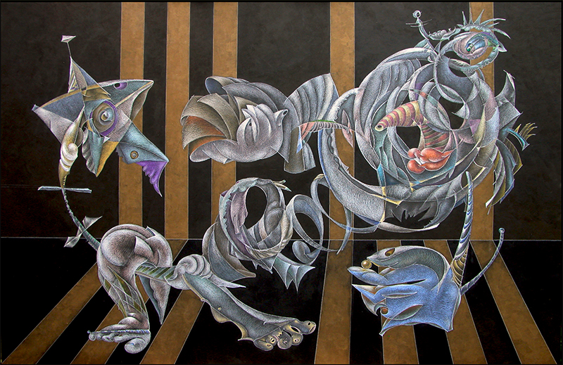 Acrylic, colored pencils on board